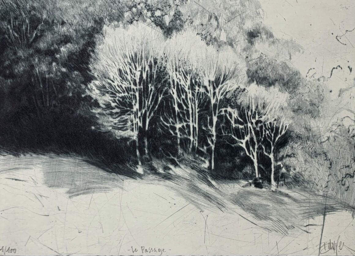 "Le passage", 2025, dry point, borderless printing on 230g Hahnemülhe paper.