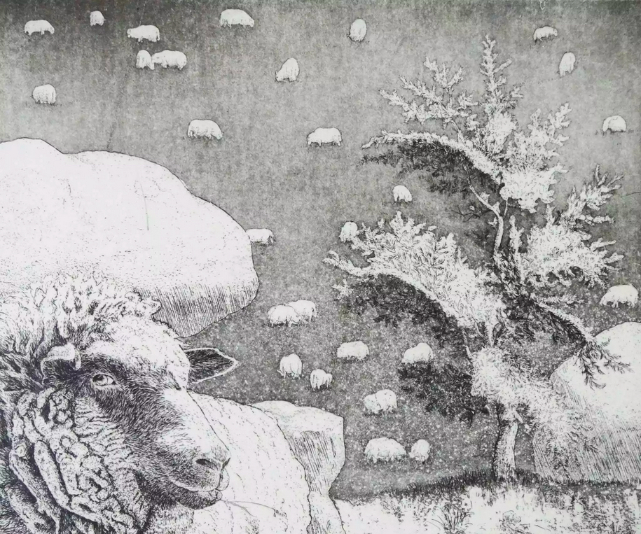 Visuel : Compter les moutons - eau-forte et aquatinte - 20x24cm