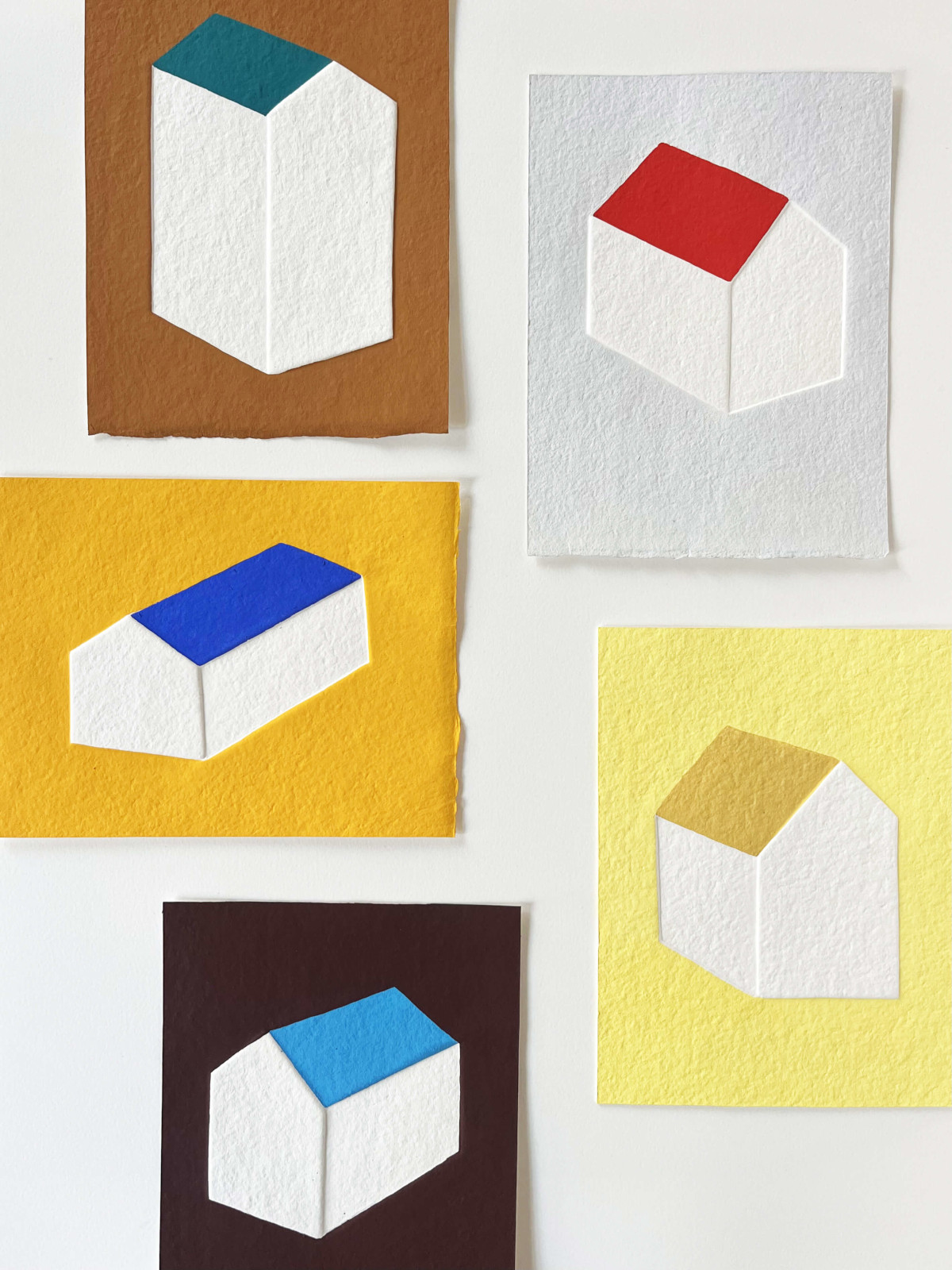 Julie Safirstein. Série Construction. 2026. 15 x 20 cm ou 20 x 15 cm. Gouache sur papier gaufré.